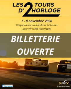 Les 2 Tours d’Horloge, l’unique compétition au monde de 24 heures ininterrompues réservée aux Véhicules Historiques de Compétition, est accessible aux GT/Tourisme (jusqu’à 1990), Sport-Prototypes (jusqu’à 1976) et Sports 2000 (jusqu’à 1986), sans utilisation possible de pneus slicks. Les équipages peuvent être composés de 2, 3 ou 4 pilotes.